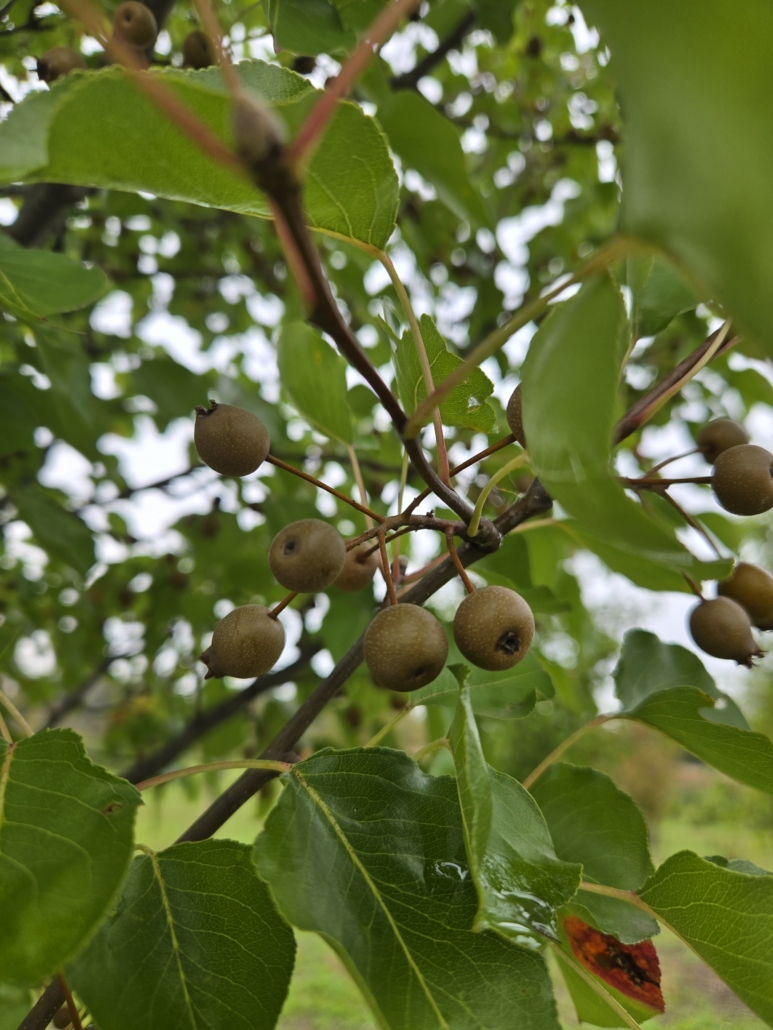 Greenish – tan pomes about 1/2″ in diameter